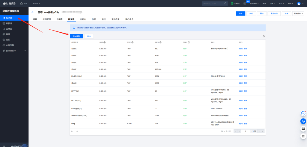 小厂由于鱼龙混杂我这里就不说了(可以参考腾讯云设置教程)(建议咨询服务器厂商进行配置),有些小厂云已经自动帮你配好规则,已经配好规则就可以省略这一步。