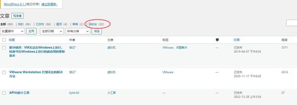前段时间,wp抽风似的,文章和评论自己跑到回收站去了!